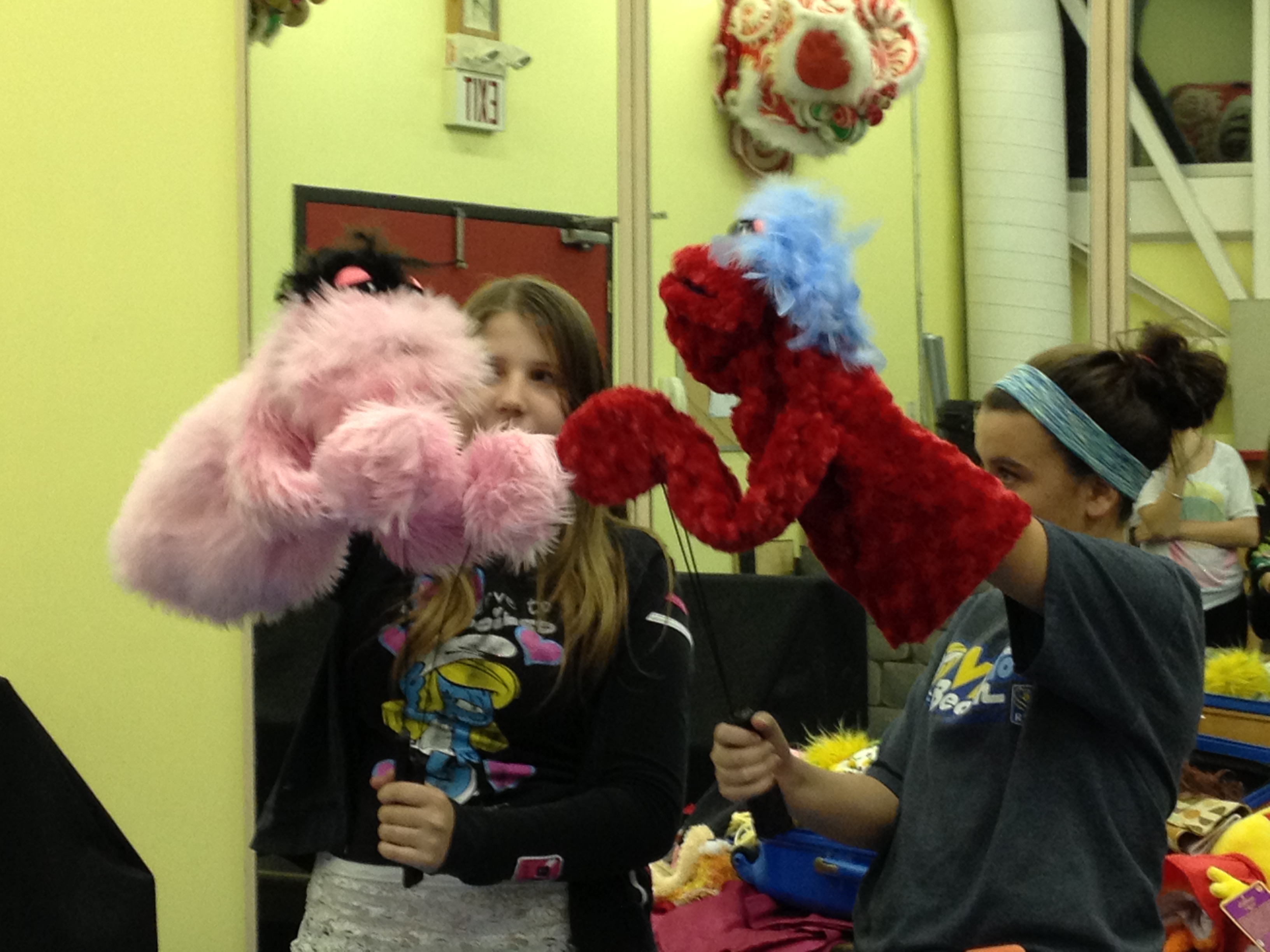 Pics Or It Didn’t Happen: T.A.G. Puppetry Class On November 8, 2012August 6, 2014 By Kerry HishonIn Theatre Photos from our super-fun puppetry class at OKTC T.A.G. on November 6 and 7, taught by Ceris Thomas! All photos taken by me with my iPhone. The TAG 1 kids practice their puppet choreography in front of the mirror. TAG 3 students experiment with Jean-Pierre and Rosie. TAG 4 students perform “Mahna Mahna.” Jean-Pierre and Rosie check out something at the side of the room… JP seems shocked. Love It? Share it! Click to email a link to a friend (Opens in new window) Email Click to share on Facebook (Opens in new window) Facebook Click to share on X (Opens in new window) X Click to share on Pinterest (Opens in new window) Pinterest Click to share on LinkedIn (Opens in new window) LinkedIn Click to share on Reddit (Opens in new window) Reddit Click to share on Tumblr (Opens in new window) Tumblr Click to share on Pocket (Opens in new window) Pocket Click to print (Opens in new window) Print Like Loading... Related